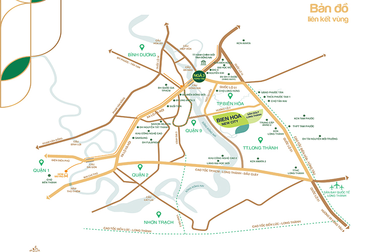 Khu đô thị Biên Hòa New City là dự án khu đô thị mới do Tập đoàn BĐS Hưng Thịnh  hợp tác và phát triển, dự án được nằm trong sân Golf Long Thành – một trong 10 sân Golf được mệnh danh là đẹp nhất Châu Á nên được thừa hưởng mảng xanh mát  và được bao bọc với dòng sông Đồng Nai hiền hòa và thơ một tạo nên một bầu không khí trong lành mát mẻ. Đặc biệt dự án sở hữu vị trí đắc địa khi cách Quận 9 chỉ 1 con sông và cách trung tâm TP HCM chỉ 25′ duy chuyển.